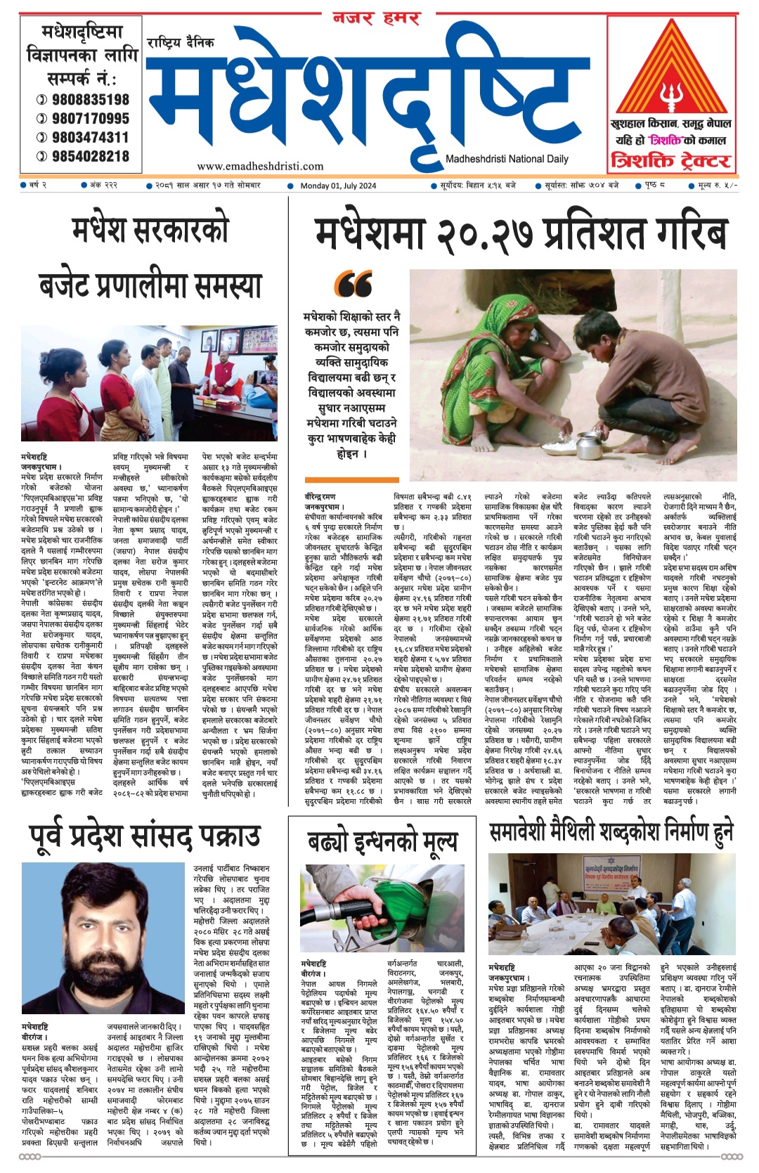 २०८१ असार १७ गतेकाे मधेशदृष्टि दैनिक