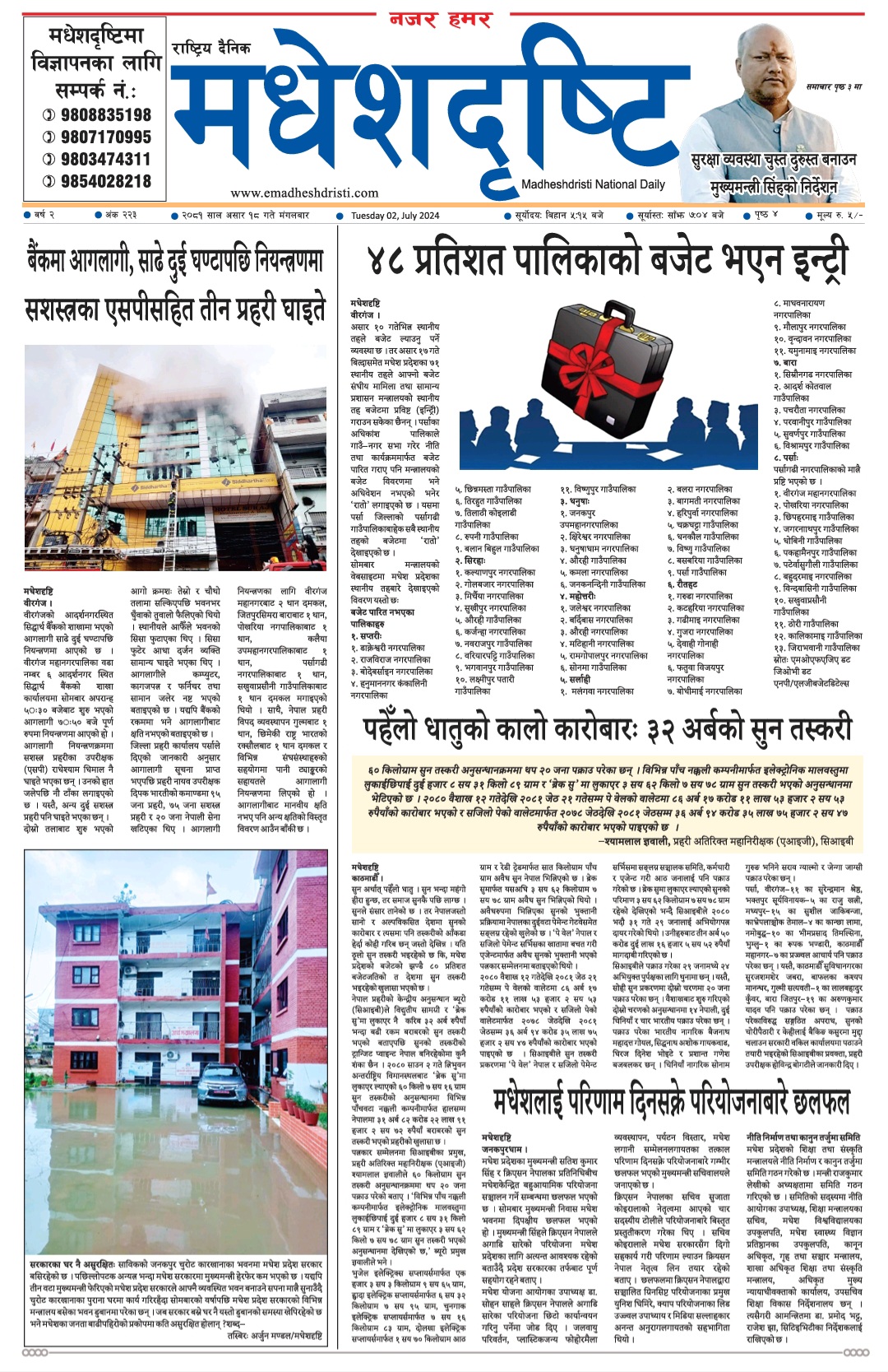 २०८१ असार १८ गतेकाे मधेशदृष्टि दैनिक