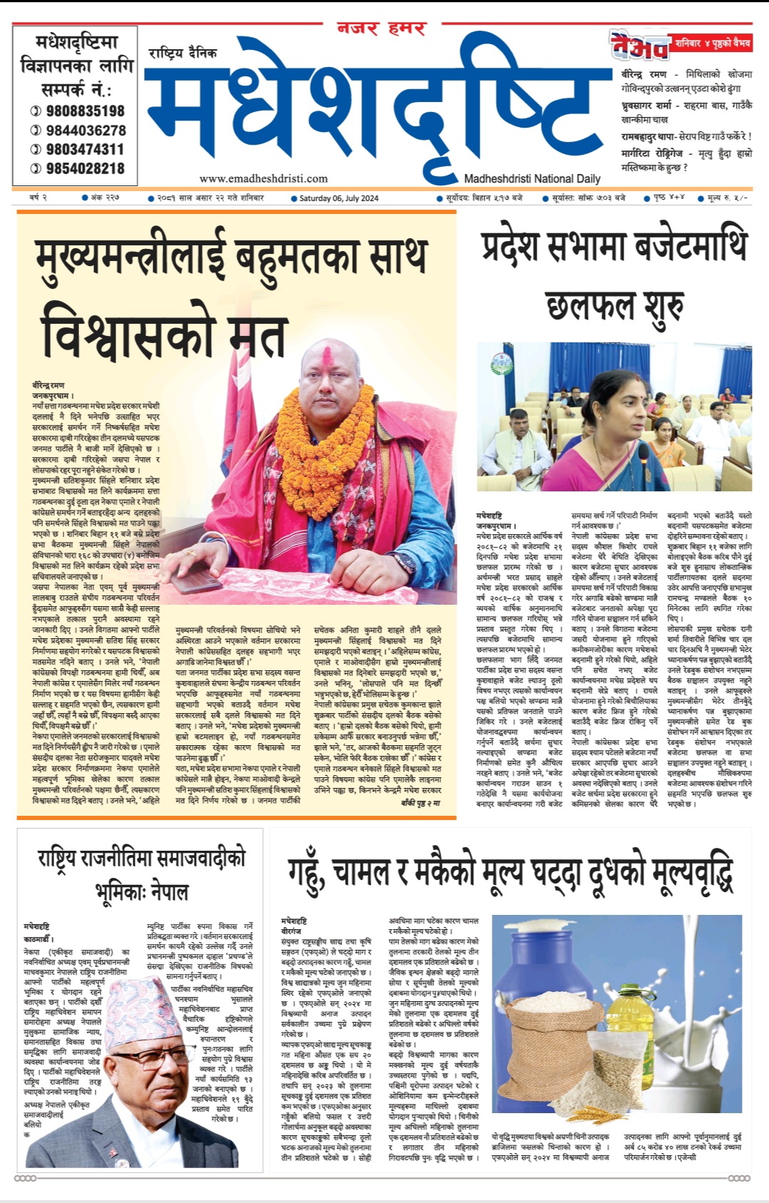 २०८१ असार २२ गतेकाे मधेशदृष्टि दैनिक