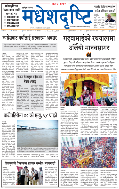 २०८१ असार २४ गतेको मधेशदृष्टि दैनिक