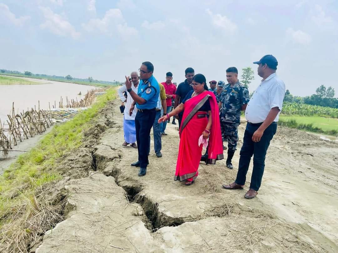 मेयर साह, उपमेयर नागेन्द्र यादव, विपद् व्यवस्थापन समितिका अध्यक्ष तथा सिडियो हीरालाल रेग्मी, नेपाल प्रहरीका एसपी दिलीप घिमिरे, सशस्त्र प्रहरीका एसपी बिक्रम हुमागाईं, मौलापुरका प्रमुख प्रशासकीय अधिकृत रामबाबु साह, आमविद्यार्थी मोर्चाका अध्यक्ष विवेक कुमार साह, दलित मोर्चाका अध्यक्ष ठागा दाससहितको टोलीले मौलापुर–१ मर्यादपुरस्थित बाँध निरीक्षण गरेको हो ।