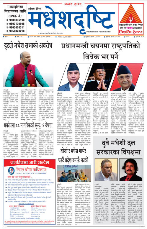 २०८१ असार २८ गतेको मधेशदृष्टि दैनिक