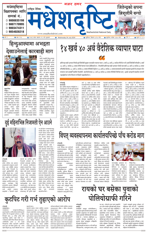 २०८१ साउन ९ गतेको मधेशदृष्टि दैनिक