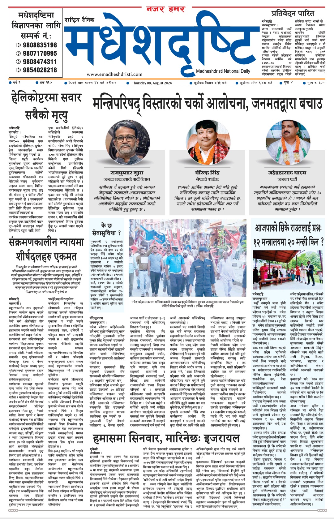 २०८१ साउन २४ गतेकाे मधेशदृष्टि दैनिक