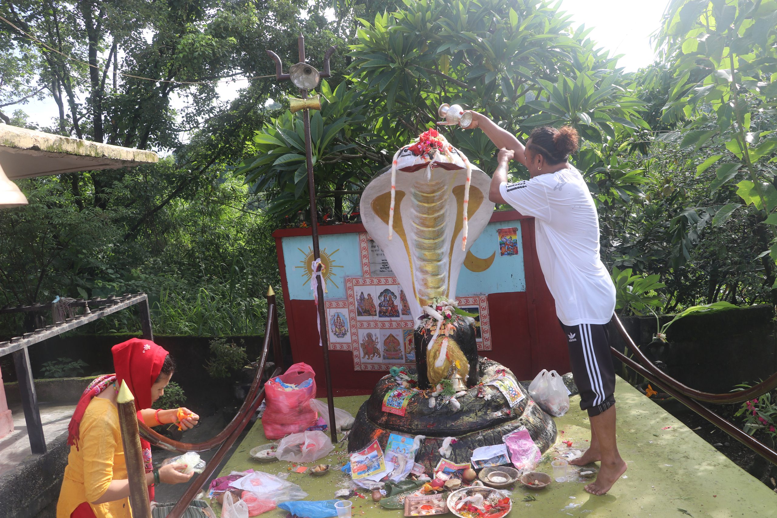 प्रत्येक वर्ष श्रावण शुक्ल पञ्चमीका दिन मनाइने नाग पञ्चमी परम्पराअनुसार नागको पूजाअर्चना गरी घरका मूलढोकामा तस्बिर टाँसेर मनाइँदैछ । नागको पूजा गरी तस्बिर टाँस्दा वर्षभरि घरमा नाग, सर्प र बिच्छीलगायत जीवले दुःख नदिने, अग्नि, मेघ र चट्याङको भयबाट बच्न सकिने जनविश्वास रहेको छ ।
