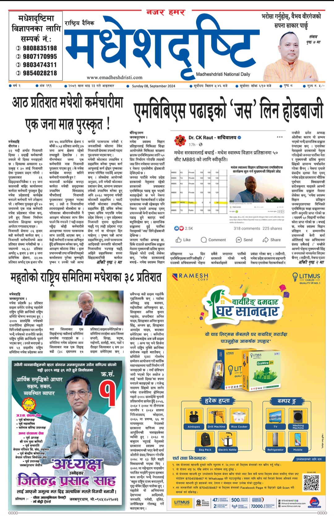 २०८१ भदाै २३ गतेकाे मधेशदृष्टि दैनिक