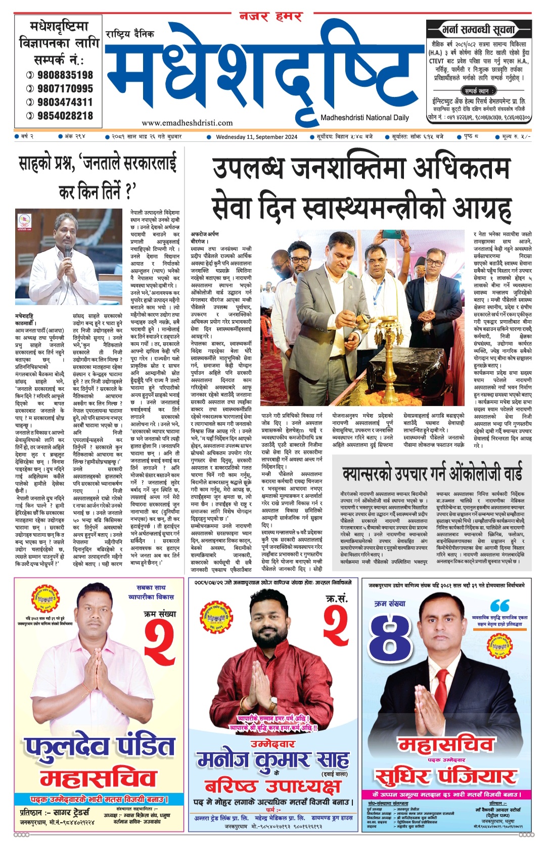 २०८१ भदाै २६ गतेकाे मधेशदृष्टि दैनिक