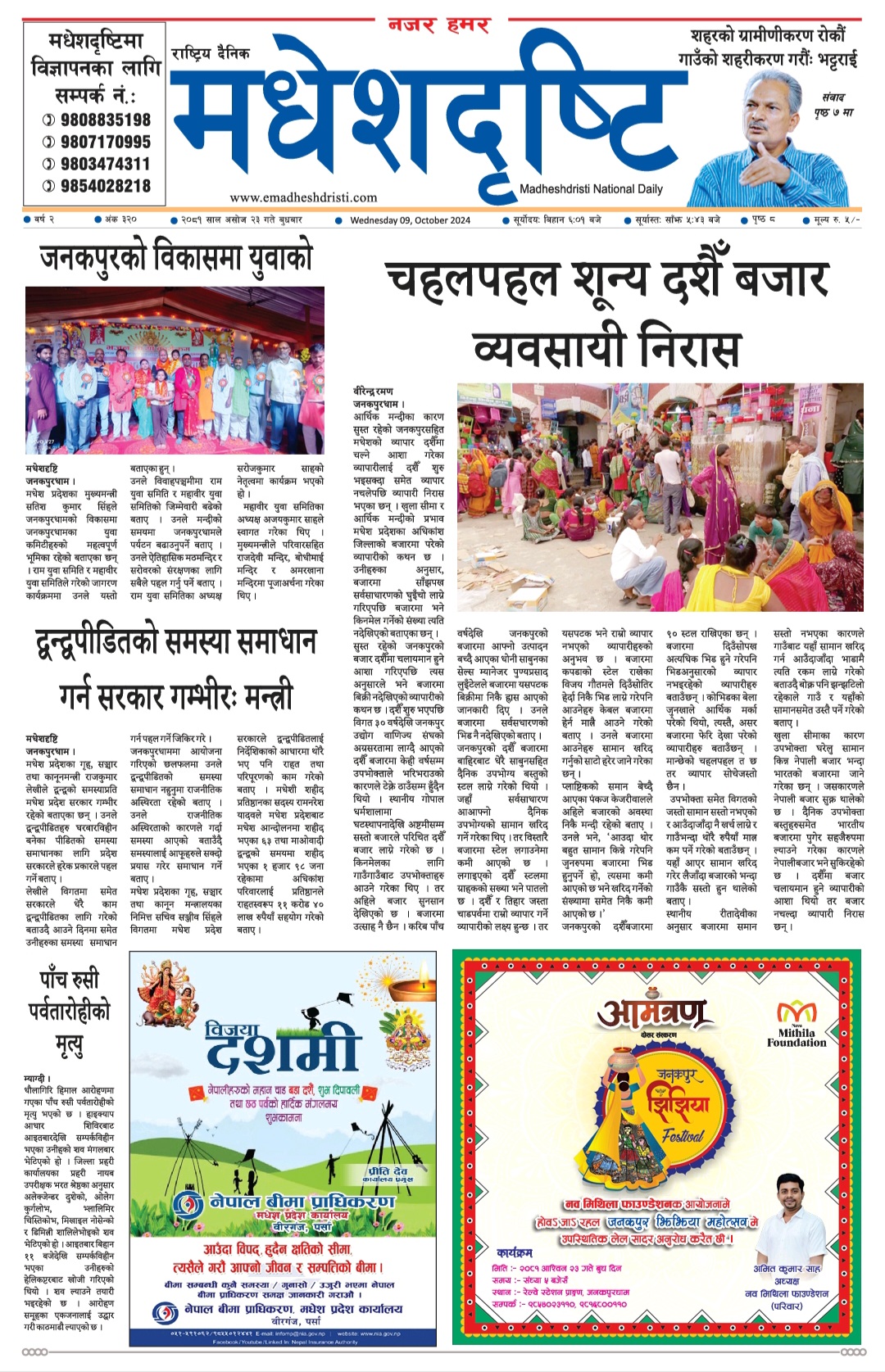 २०८१ असाेज २३ गतेकाे मधेशदृष्टि दैनिक