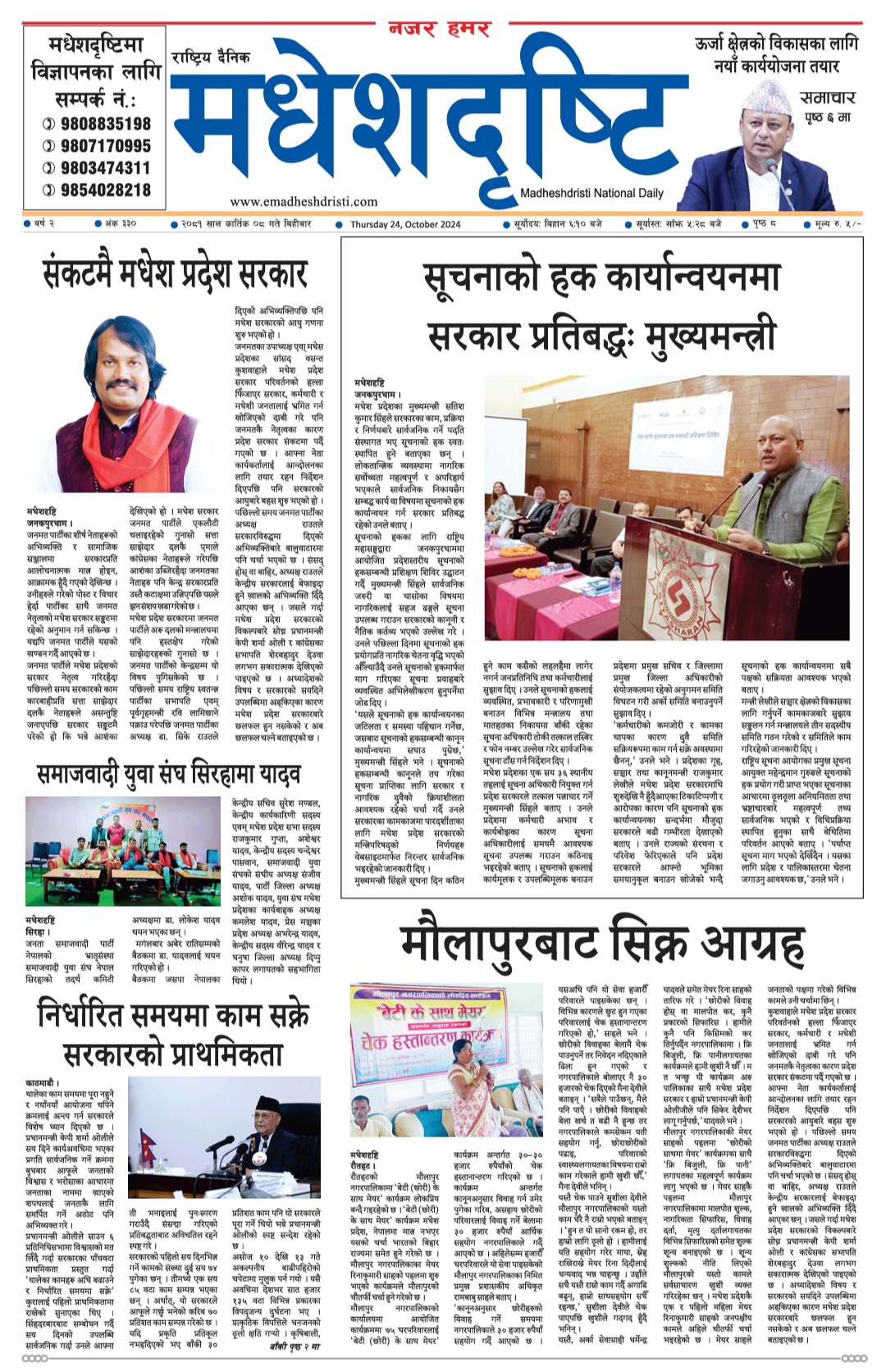 २०८१ कात्तिक ८ गतेकाे मधेशदृष्टि दैनिक