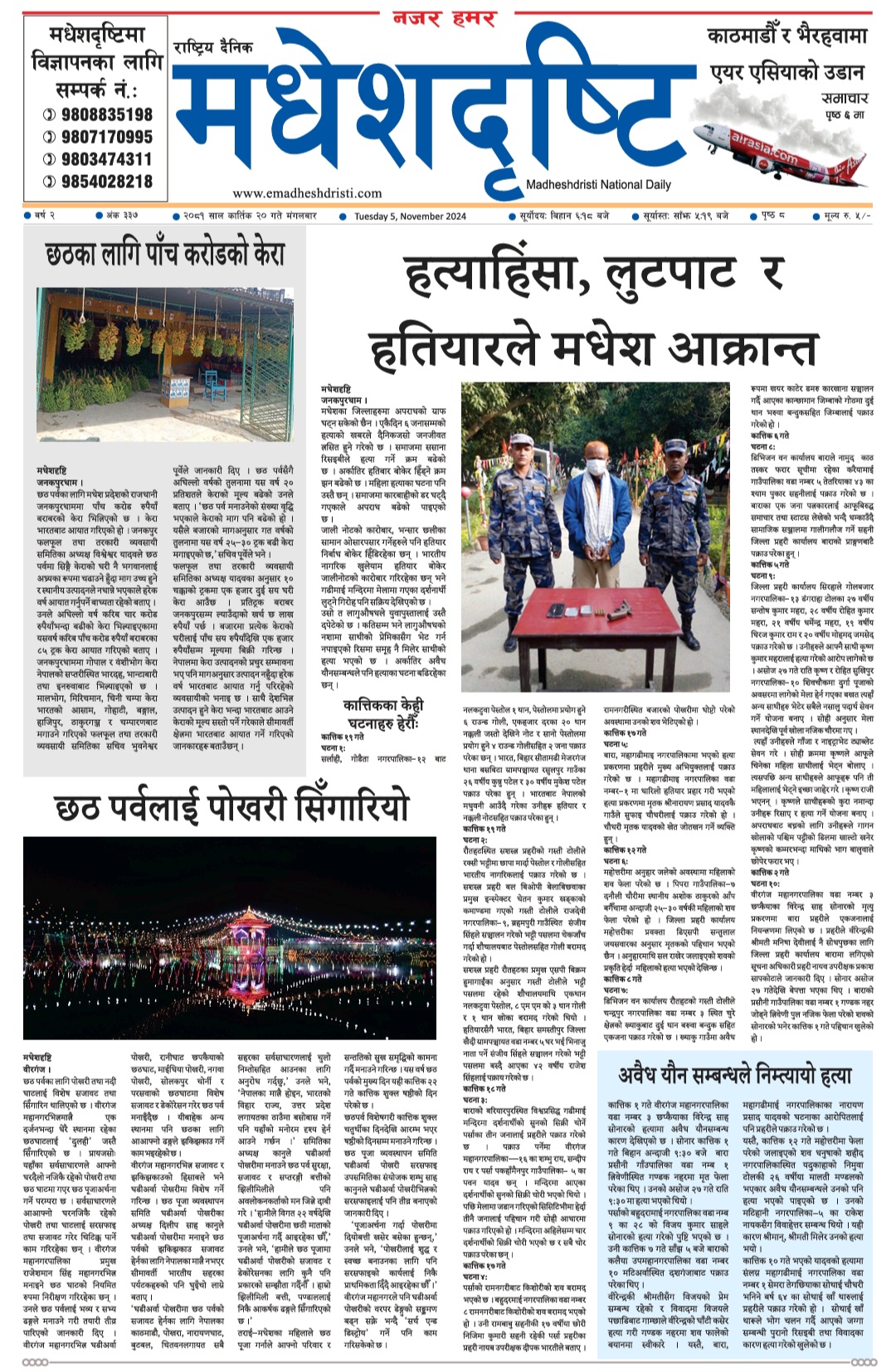 २०८१ कात्तिक २० गतेकाे मधेशदृष्टि दैनिक
