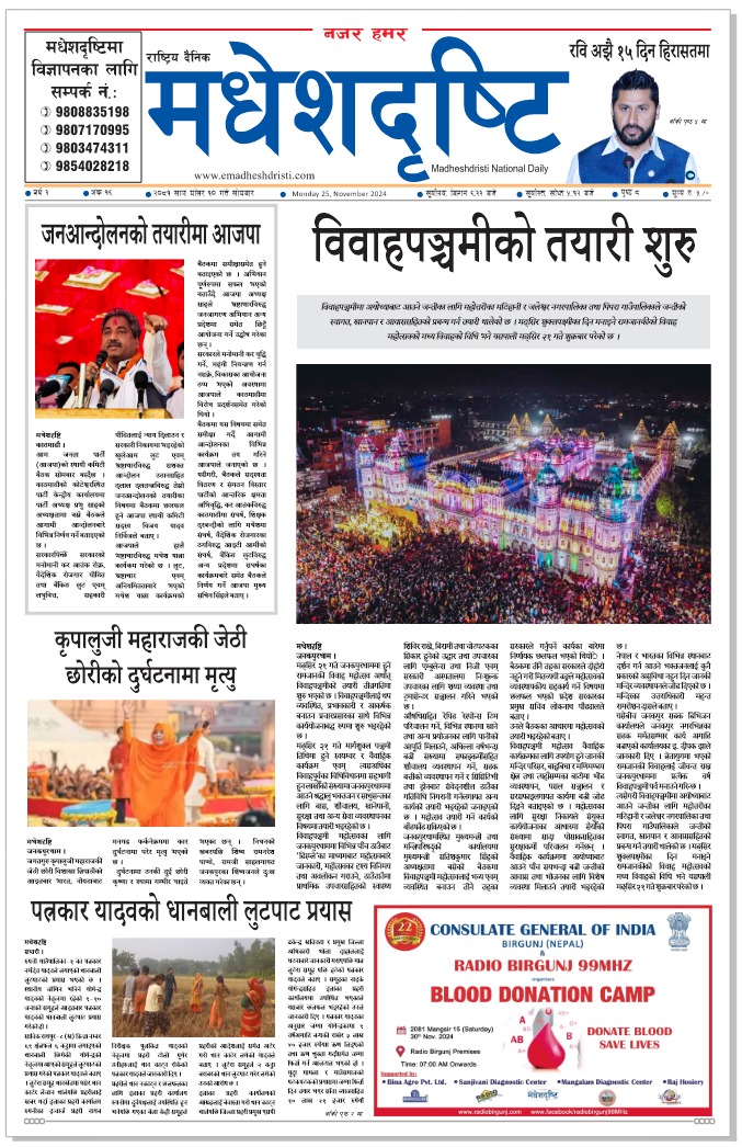 २०८१ मंसिर १० गतेकाे मधेशदृष्टि दैनिक