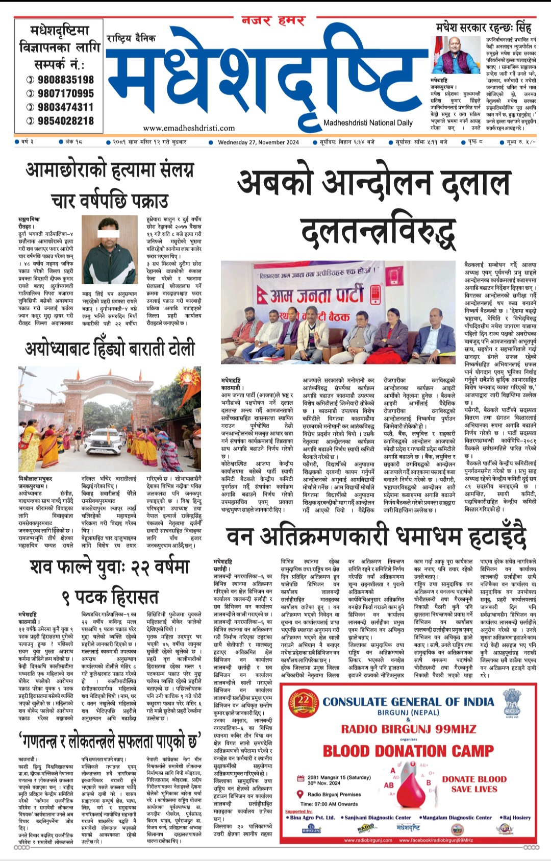 २०८१ मंसिर १२ गतेकाे मधेशदृष्टि दैनिक