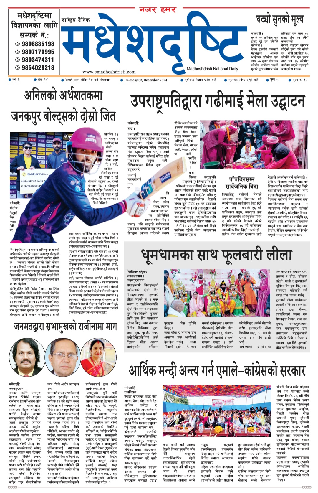 २०८१ मंसिर १८ गतेकाे मधेशदृष्टि दैनिक