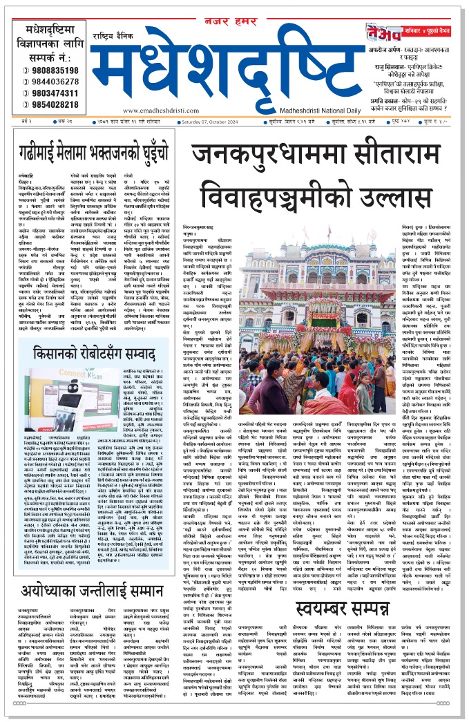 २०८१ मंसिर २२ गतेकाे मधेशदृष्टि दैनिक