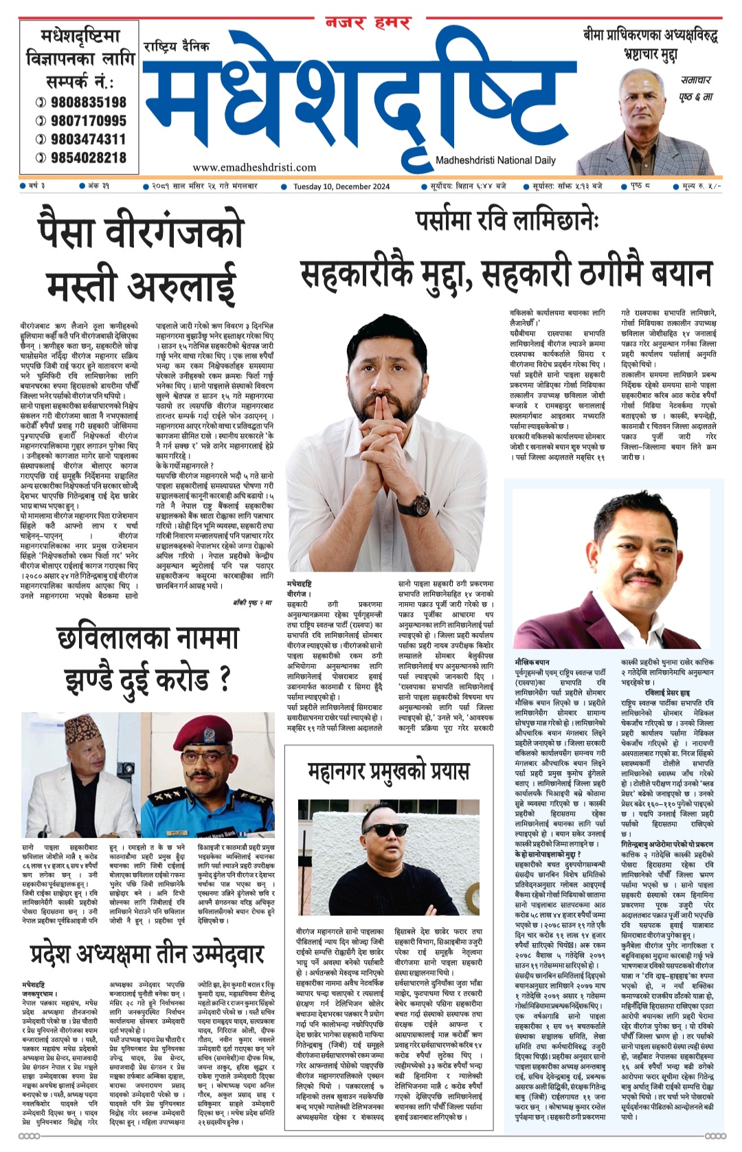 २०८१ मंसिर २५ गतेकाे मधेशदृष्टि दैनिक