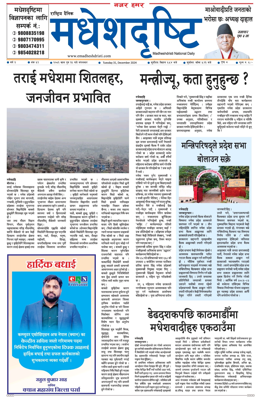 २०८१ पुस १६ गतेकाे मधेशदृष्टि दैनिक