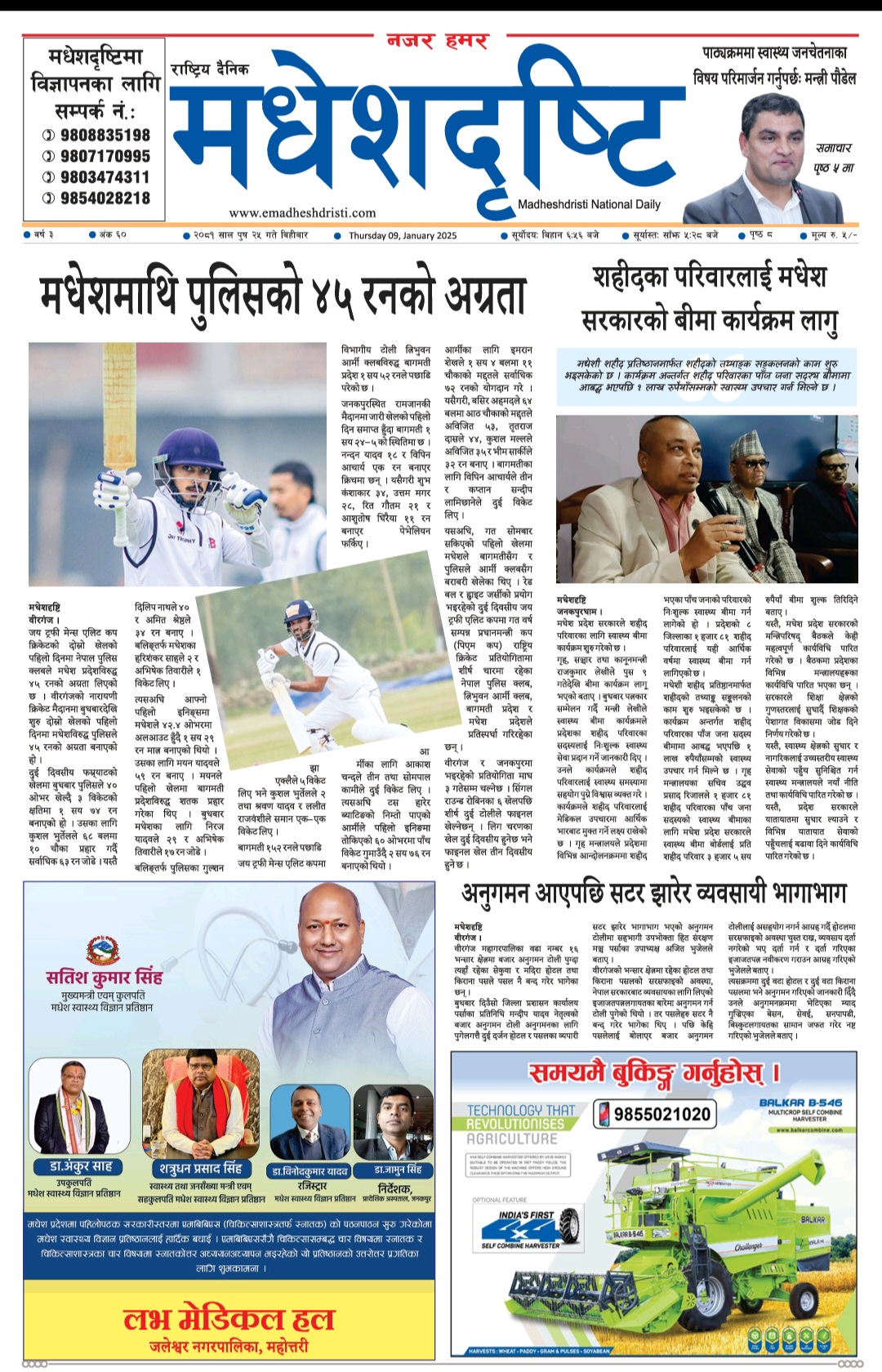 २०८१ पुस २५ गतेकाे मधेशदृष्टि दैनिक