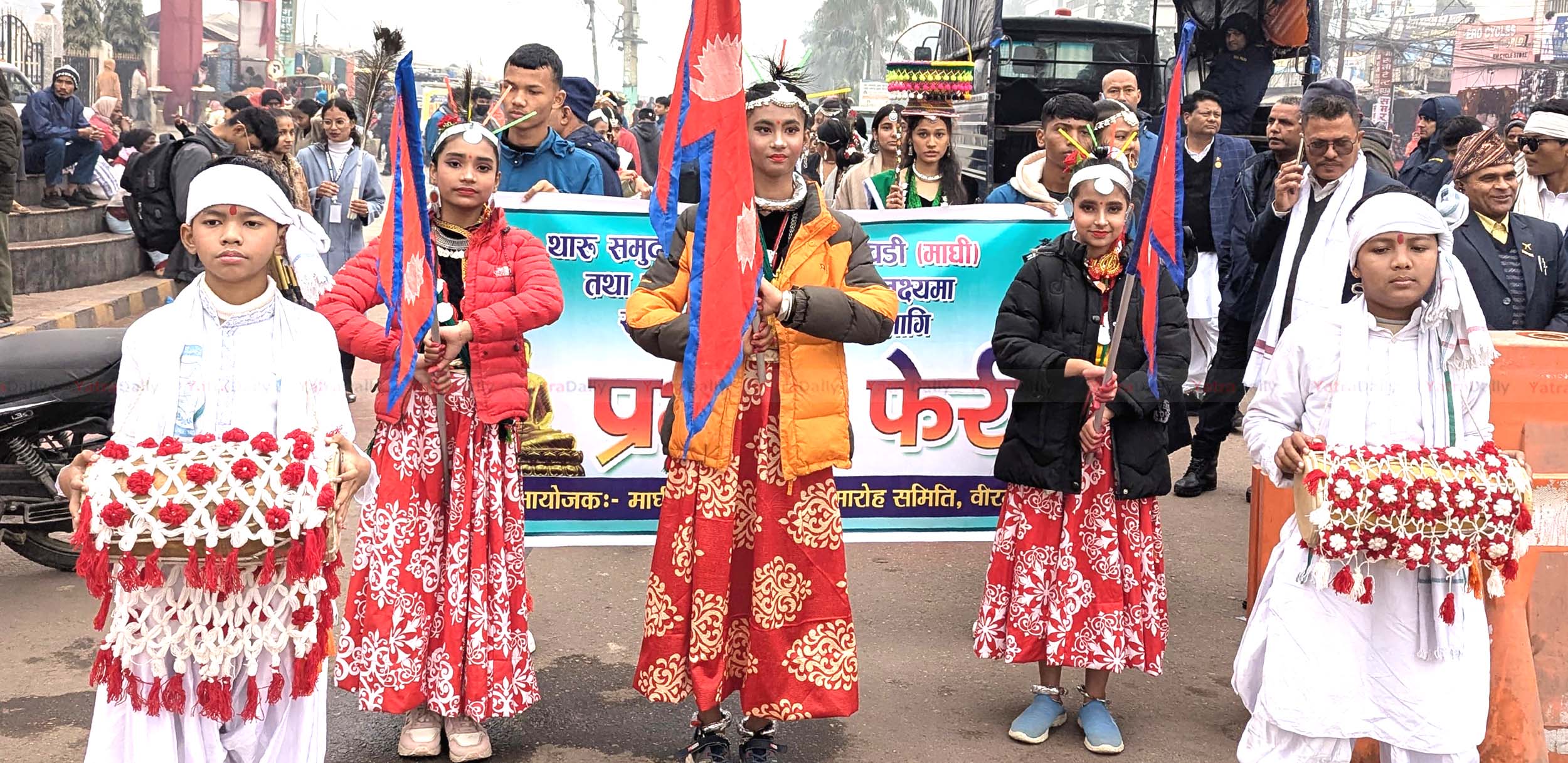 वीरगंजमा माघे संक्रान्तिको अवसरमा प्रभातफेरी निकालिएको छ । माघी महोत्सव मूल समारोह समितिको आयोजनामा वीरगंजको घण्टाघरबाट सुरु भएको प्रभातफेरी वीरगंजको आदर्शनगरस्थित स्विमिङ् पुल परिसरमा पुगेर टुङ्गिएको थियो ।
