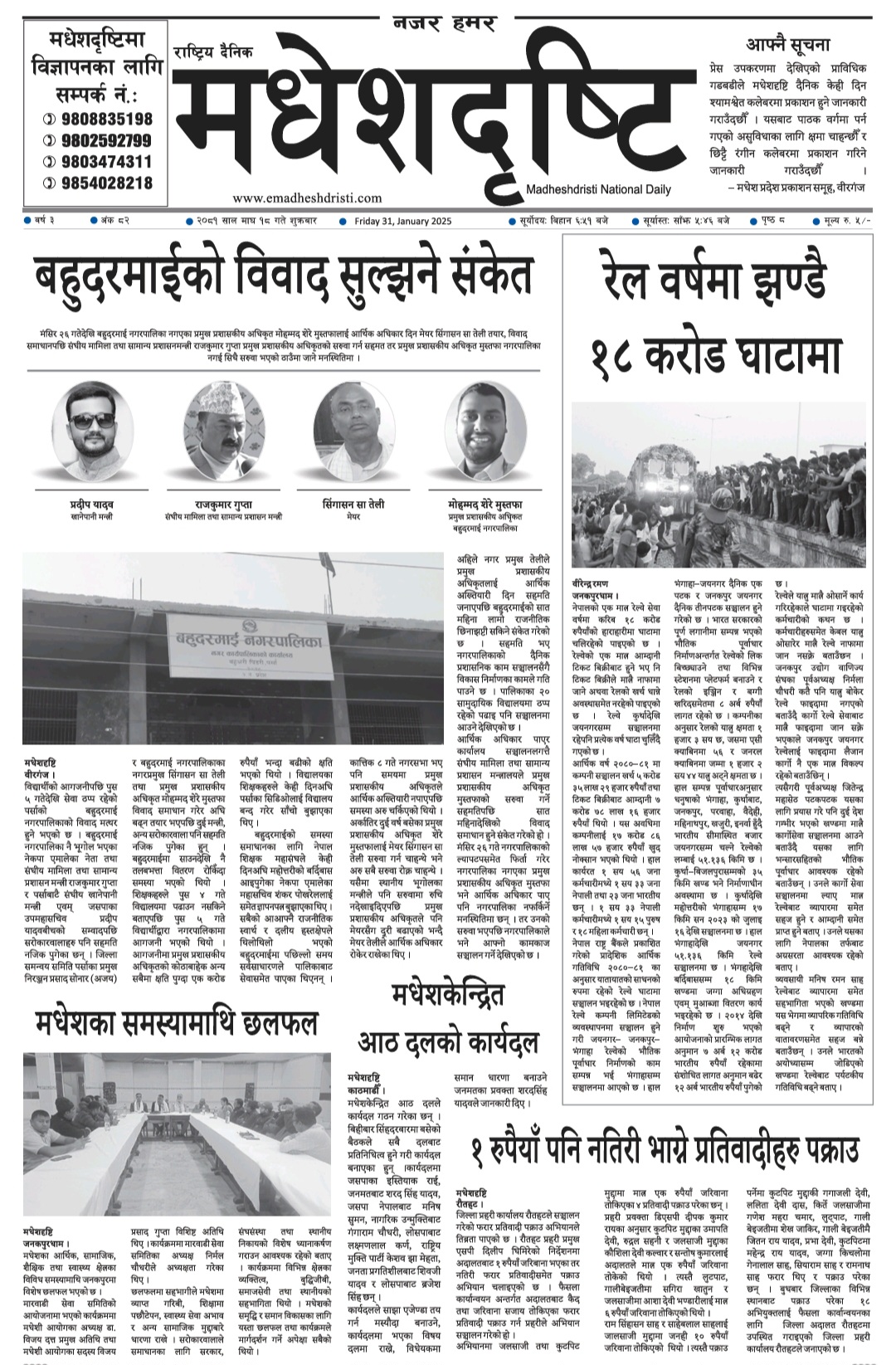 २०८१ माघ १८ गतेकाे मधेशदृष्टि दैनिक