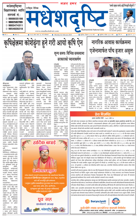 २०८१ माघ २८ गतेको मधेशदृष्टि दैनिक