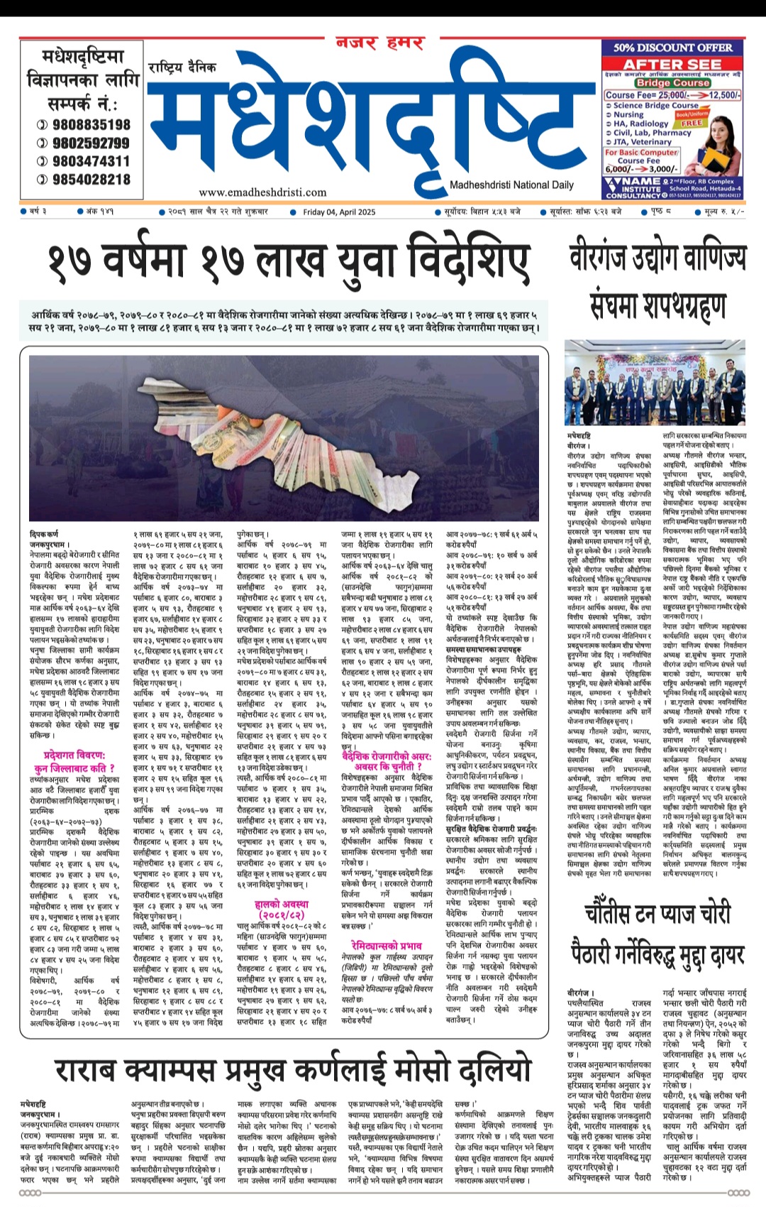 २०८१ चैत २२ गतेकाे मधेशदृष्टि दैनिक