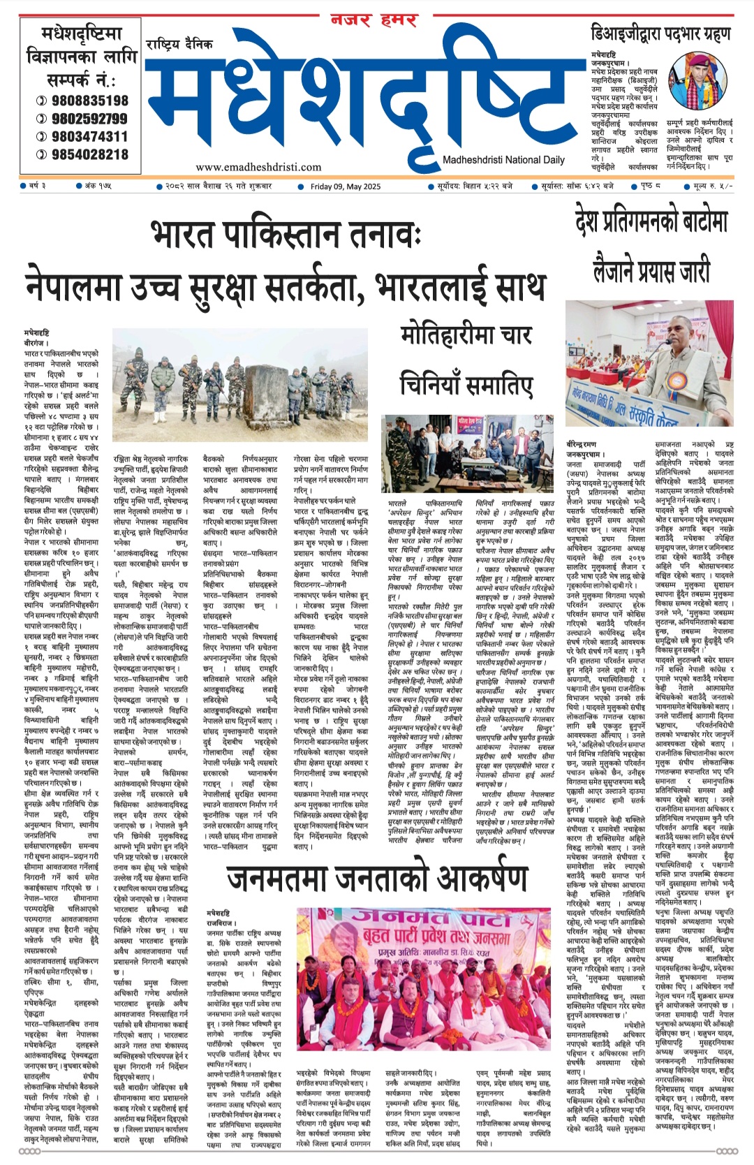 २०८२ वैेशाख २६ गतेकाे मधेशदृष्टि दैनिक
