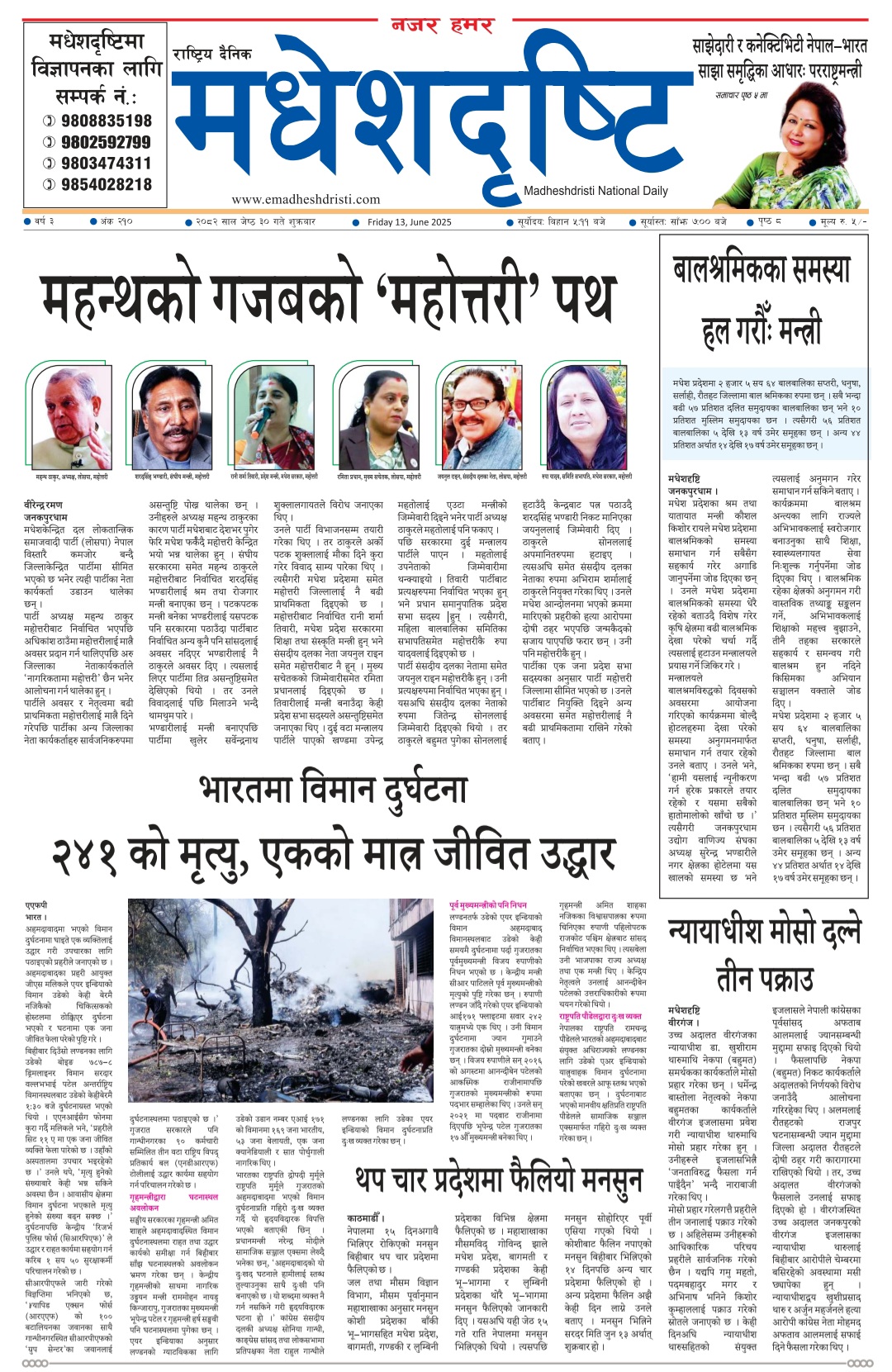 २०८२ जेठ ३० गतेकाे मधेशदृष्टि दैनिक