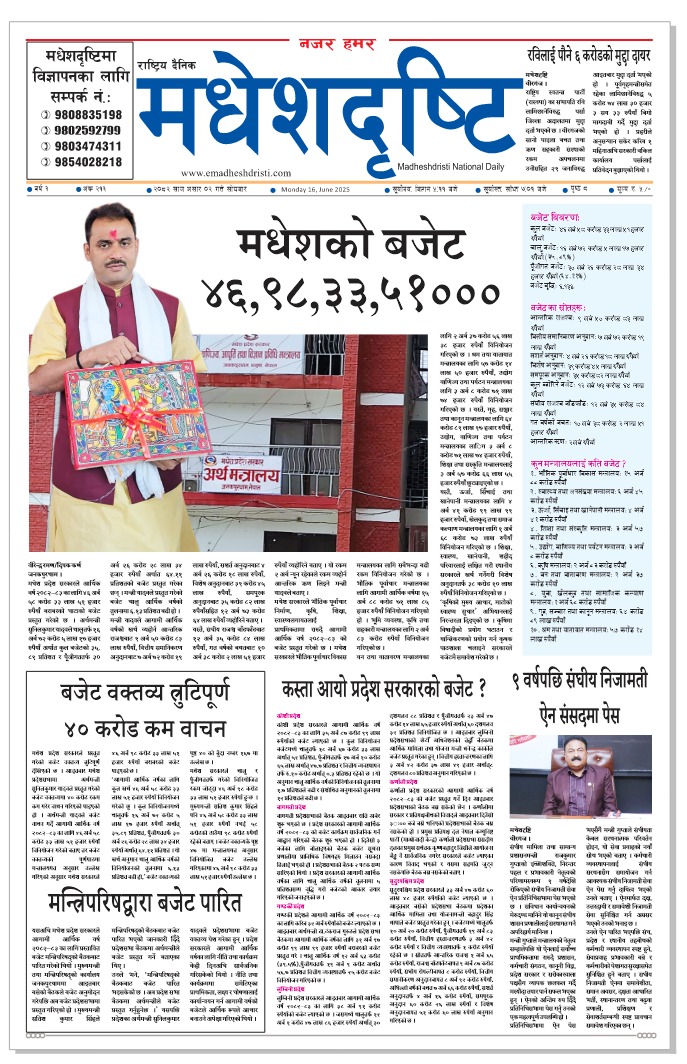 २०८२ असार २ गतेकाे मधेशदृष्टि दैनिक