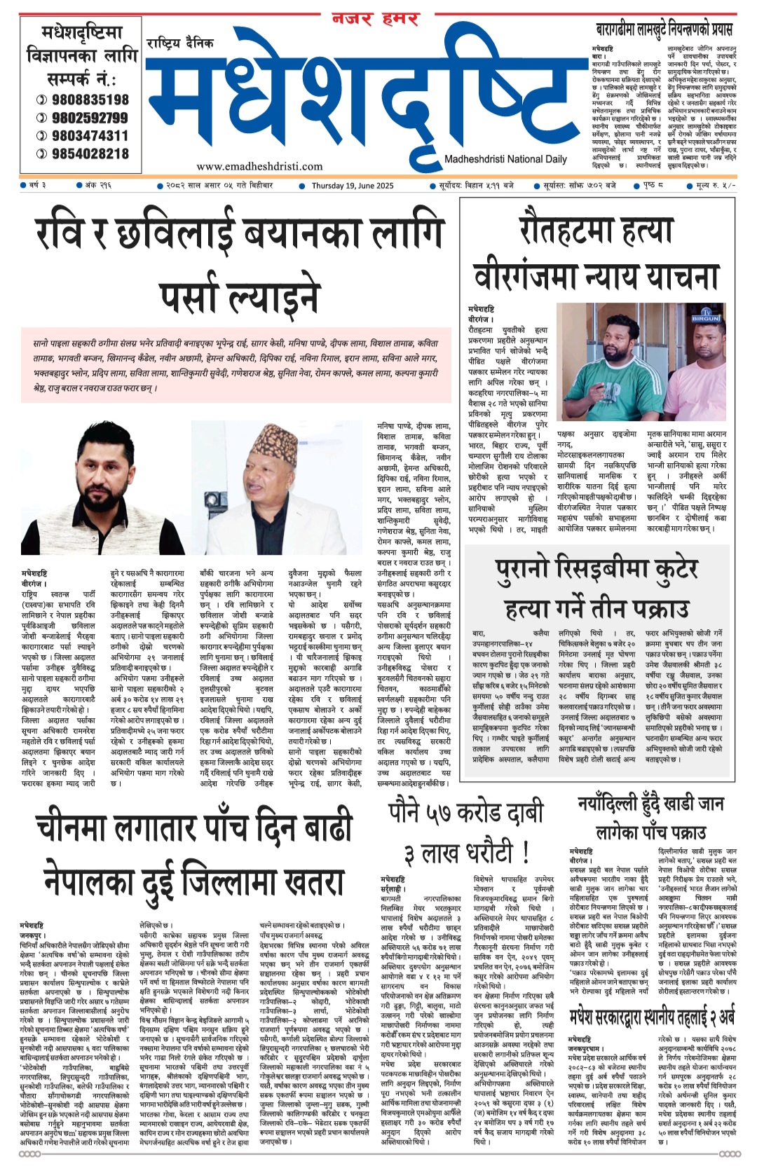 २०८२ असार ५ गतेकाे मधेशदृष्टि दैनिक