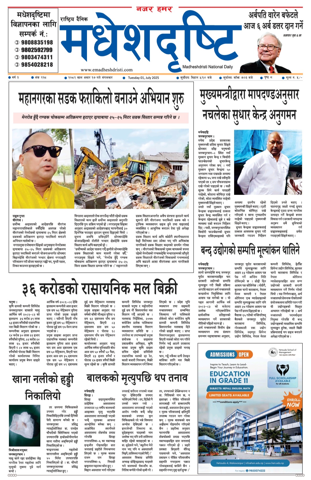 २०८२ असार १७ गतेकाे मधेशदृष्टि दैनिक