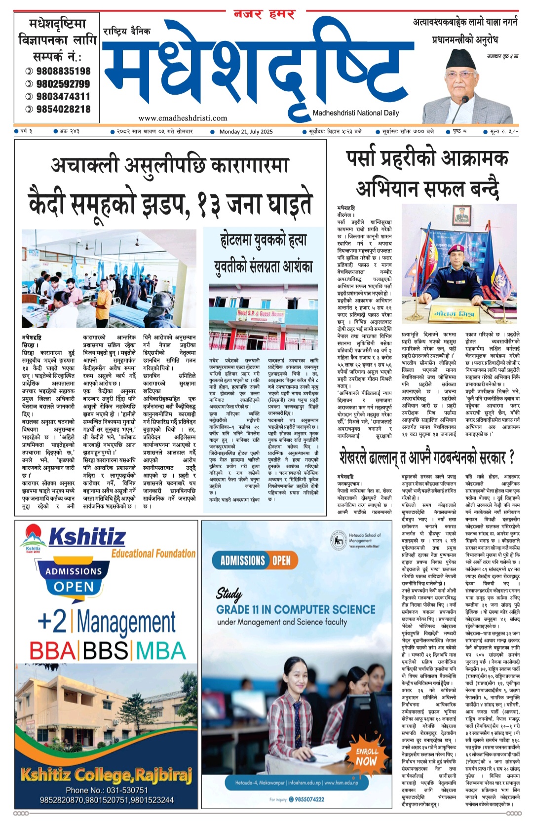 २०८२ साउन ५ गतेकाे मधेशदृष्टि दैनिक