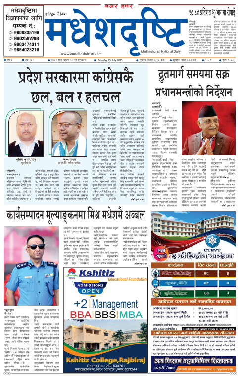 २०८२ साउन १३ गतेको मधेशदृष्टि दैनिक