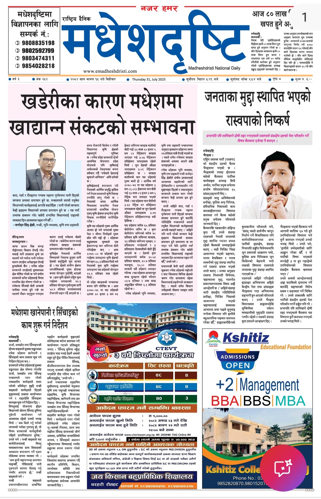 २०८२ साउन १५ गतेकाे मधेशदृष्टि दैनिक