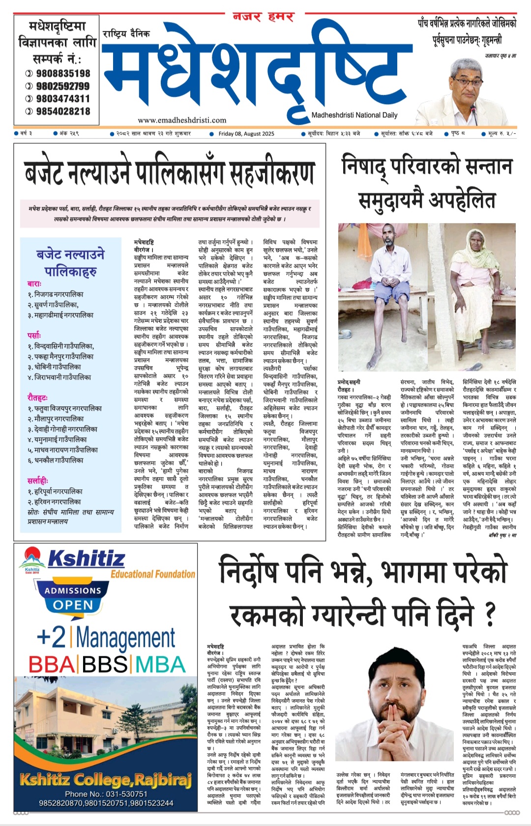 २०८२ साउन २३ गतेकाे मधेशदृष्टि दैनिक
