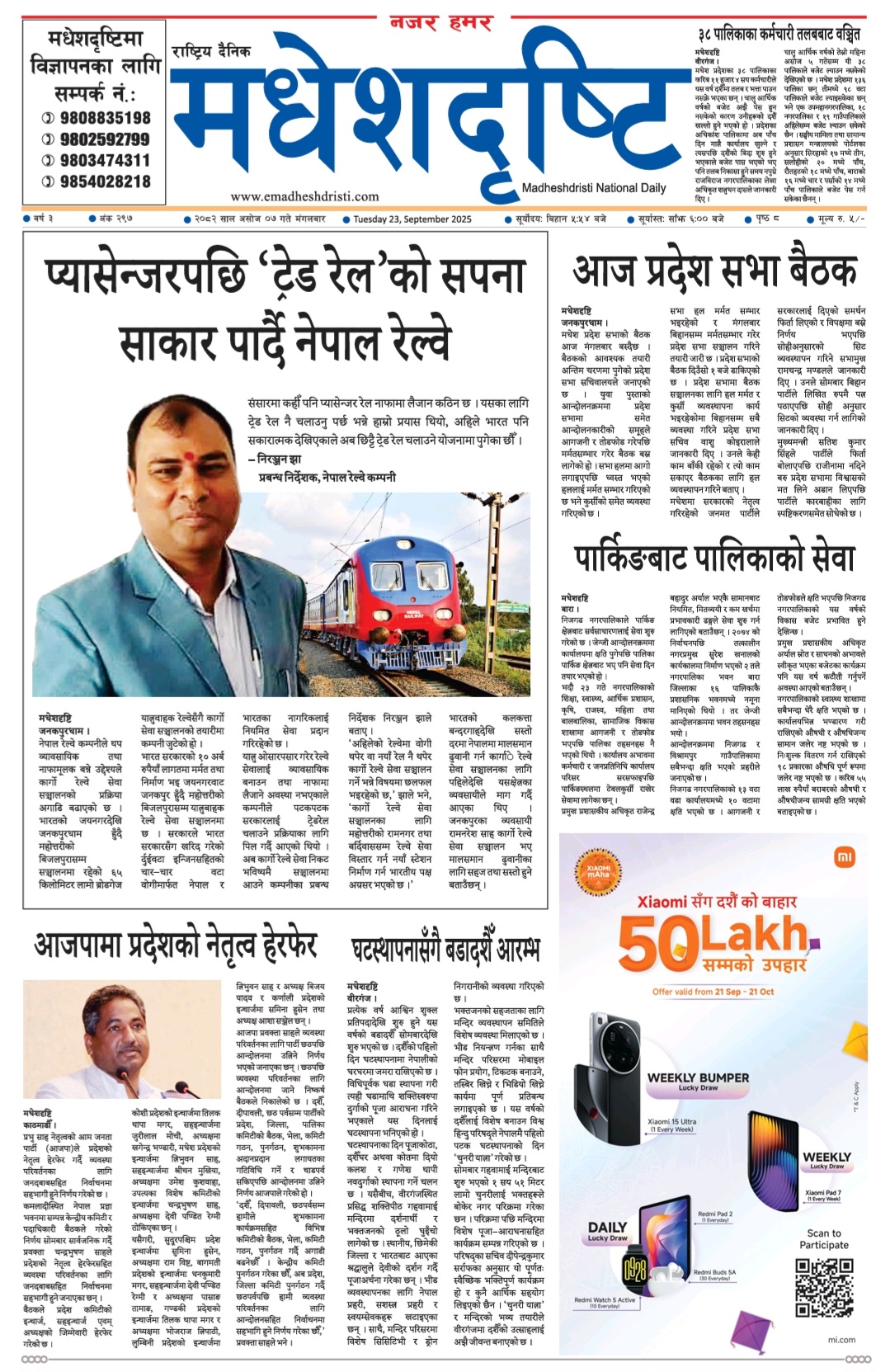 २०८२ असाेज ७ गतेकाे मधेशदृष्टि दैनिक