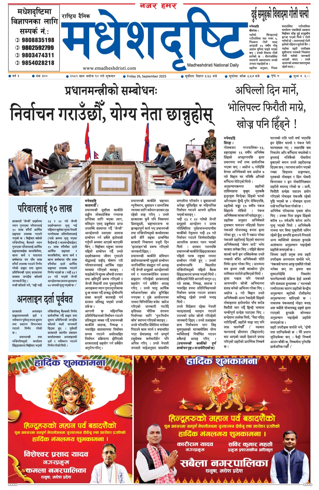 २०८२ असाेज १० गतेकाे मधेशदृष्टि दैनिक