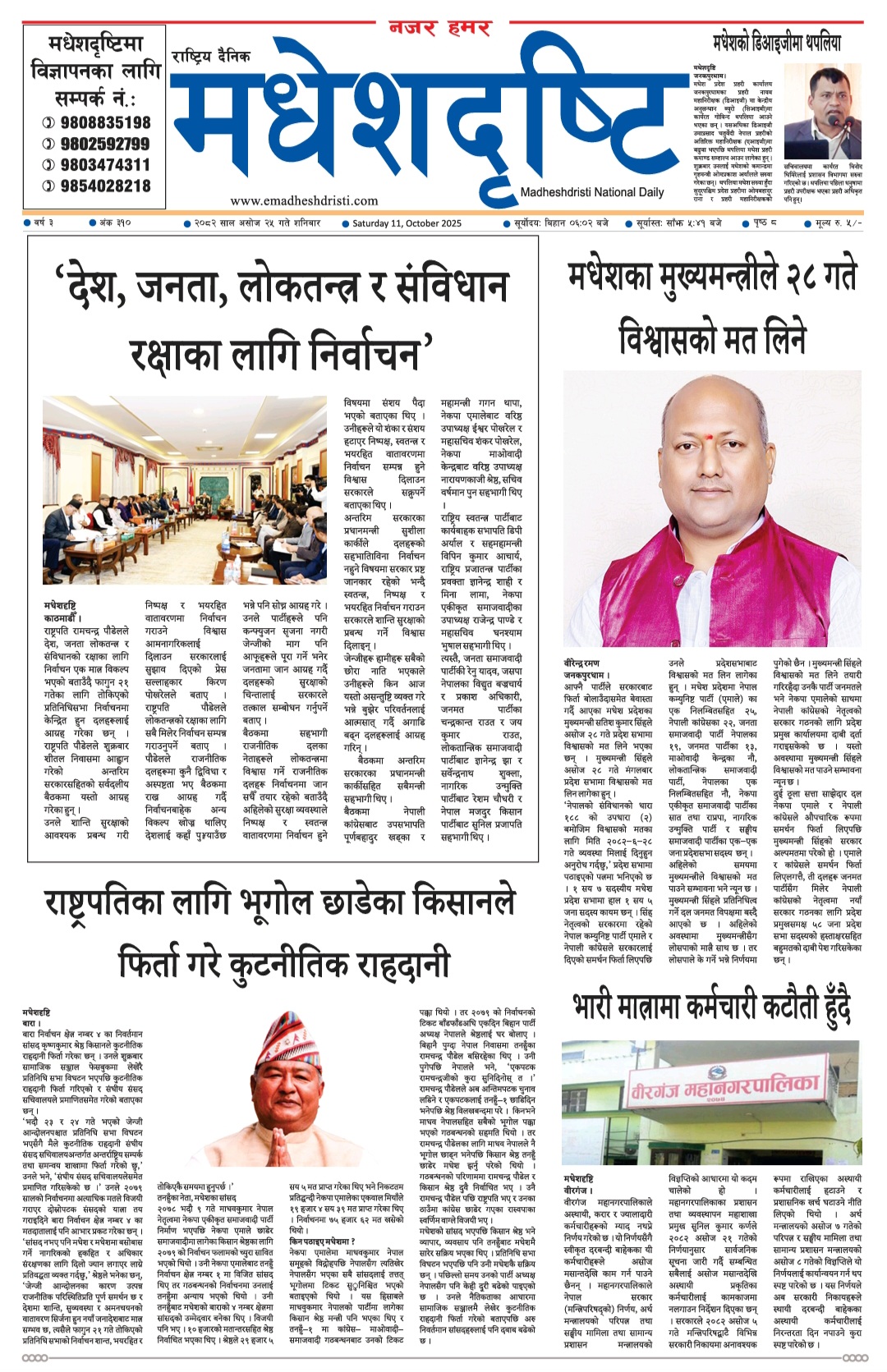 २०८२ असाेज २५ गतेकाे मधेशदृष्टि दैनिक