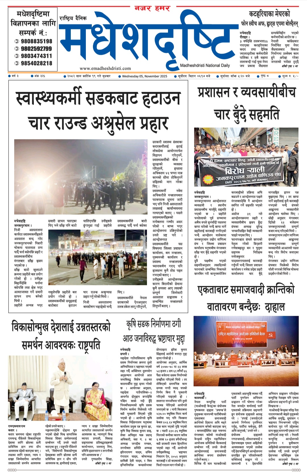 २०८२ कात्तिक १९ गतेकाे मधेशदृष्टि दैनिक