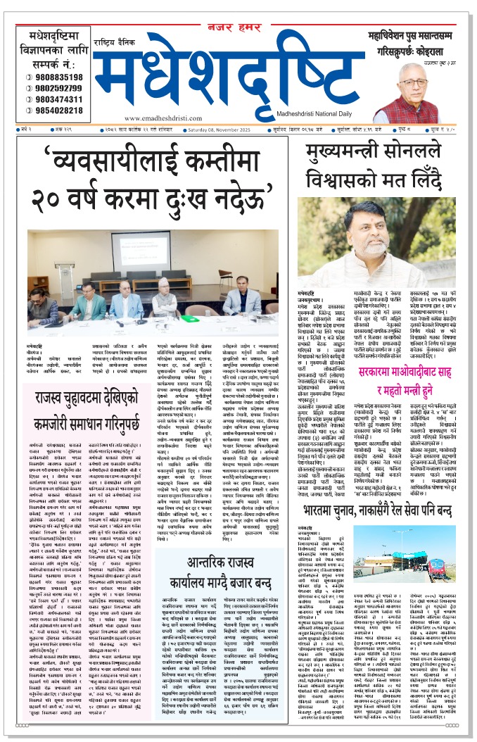 २०८२ कात्तिक २२ गतेको मधेशदृष्टि दैनिक