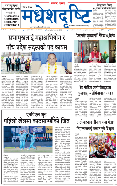 २०८२ मंसिर २ गतेको मधेशदृष्टि दैनिक