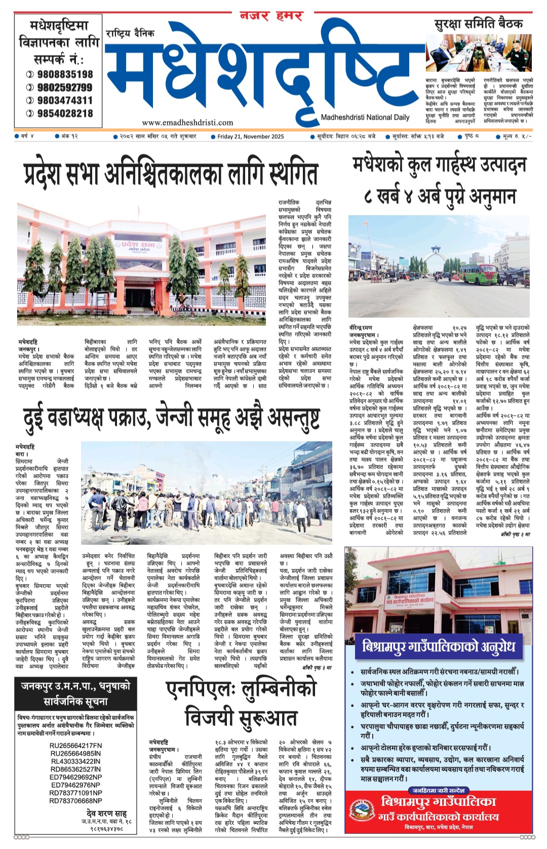 २०८२ मंसिर ५ गतेकाे मधेशदृष्टि दैनिक