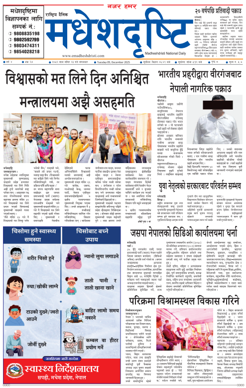 २०८२ मंसिर २३ गतेको मधेशदृष्टि दैनिक