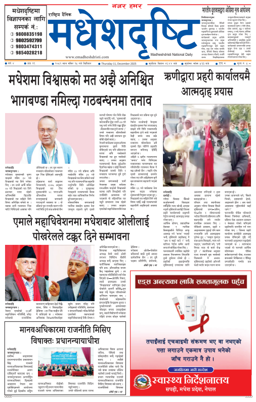 २०८२ मंसिर २५ गतेको मधेशदृष्टि दैनिक