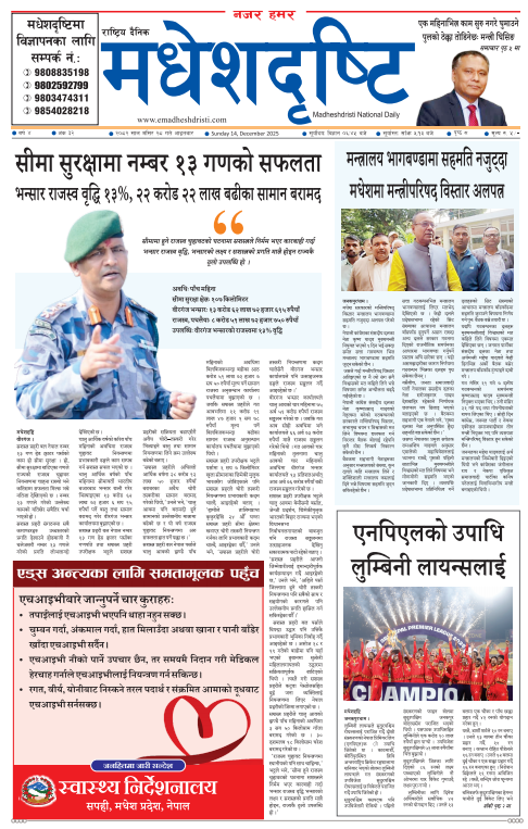 २०८२ मंसिर २८ गतेको मधेशदृष्टि दैनिक