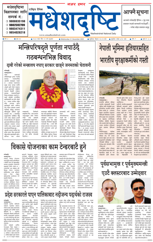 २०८२ पुस २ गतेको मधेशदृष्टि दैनिक