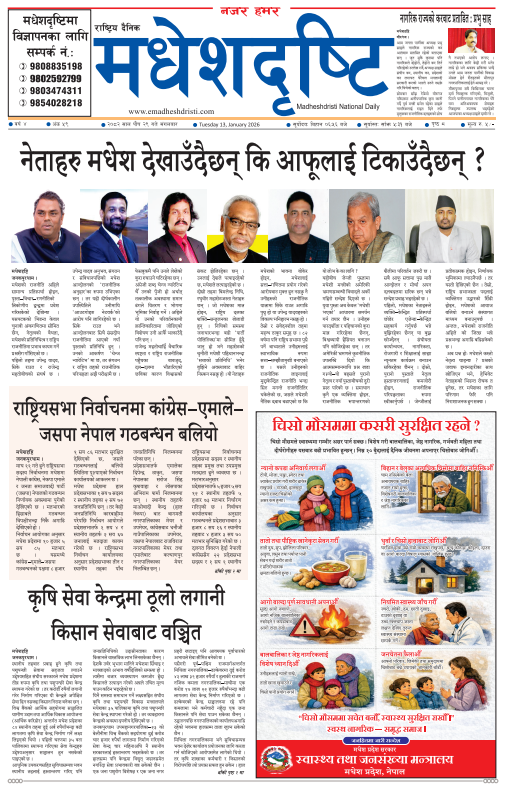 २०८२ पुस २९ गतेको मधेशदृष्टि दैनिक