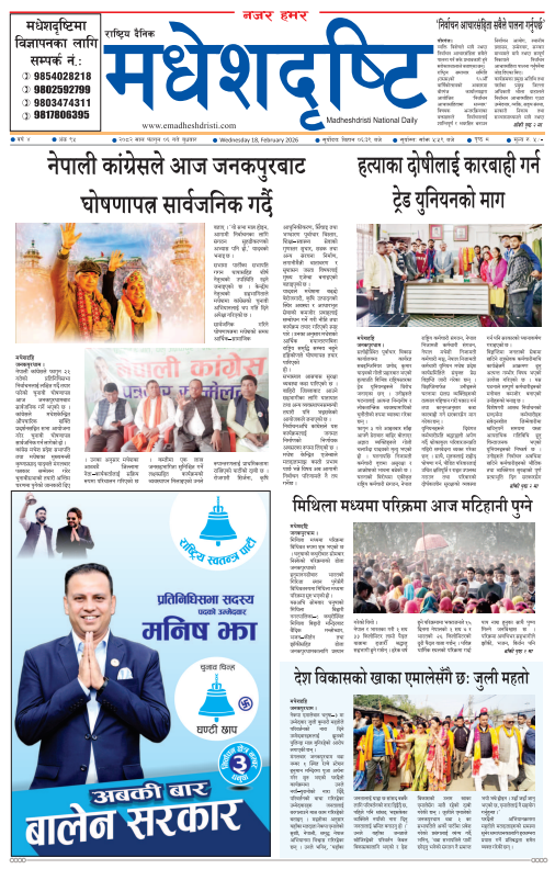 २०८२ फागुन ६ गतेको मधेशदृष्टि दैनिक
