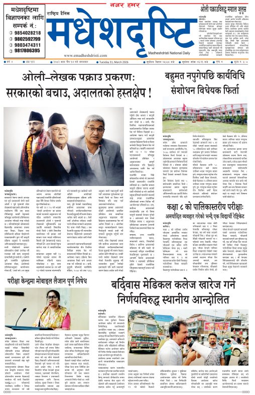 २०८२ चैत १७ गतेको मधेशदृष्टि दैनिक